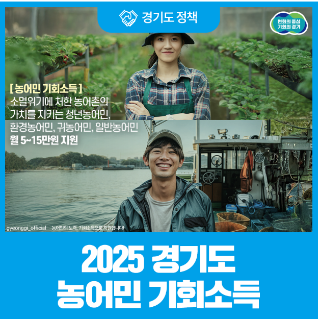 지속가능한 농어업의 발전을 위해 농어민에게 월 일정금액을 지원하는「경기도 농어민 기회소득」