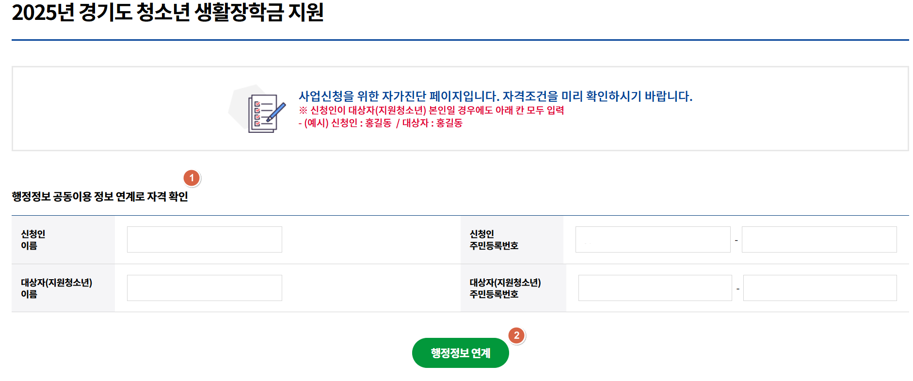 정보이용 동의 후 행정정보 공동이용 연계해 주시면 신청대상자인지 조회할 수 있습니다.