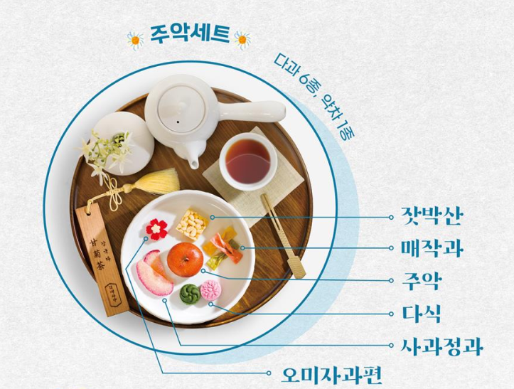 - 다과와 약차는 모두 제공되며, 테이블마다 안내서가 비치되어 있어 각 음식의 의미와 유래를 알아볼 수 있습니다.