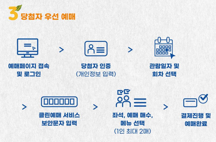 - 참고 사항: 선착순 좌석 선택이며, 당첨자도 예매 기간 내에 티켓을 구매해야 합니다.