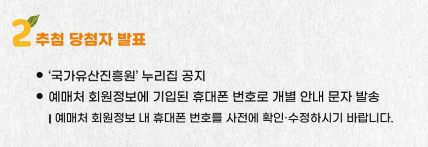 - 발표 방법: 국가유산진흥원 홈페이지 공지 및 개별 문자 통보