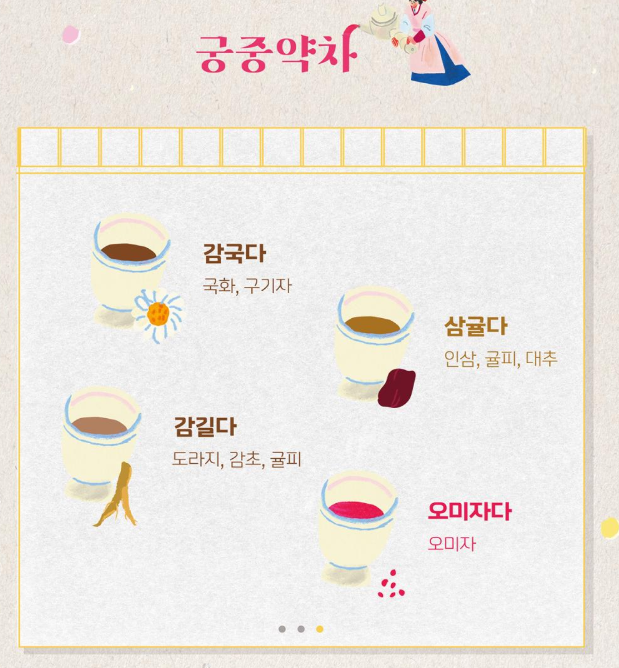 각 세트에는 궁중 약차 1종이 포함되어 있으며, 현장에서 선택할 수 있습니다.