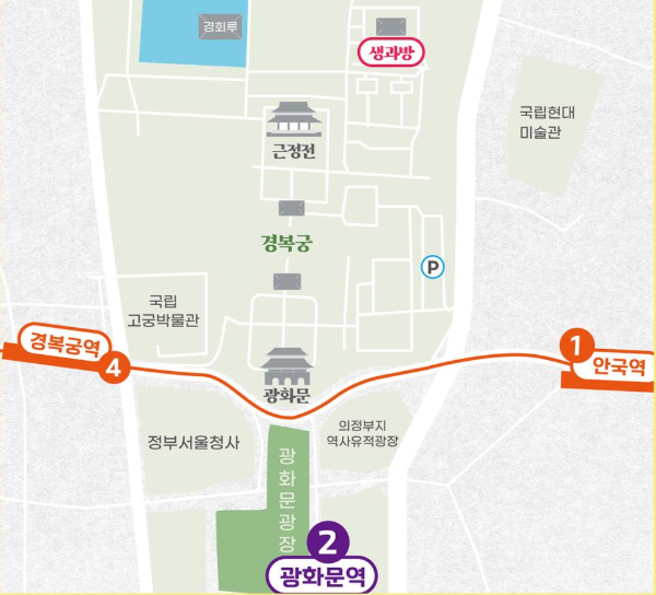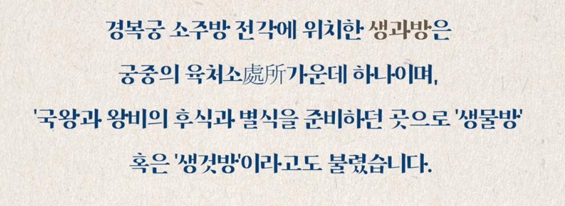 - 주소: 서울특별시 종로구 사직로 161 경복궁 생과방
