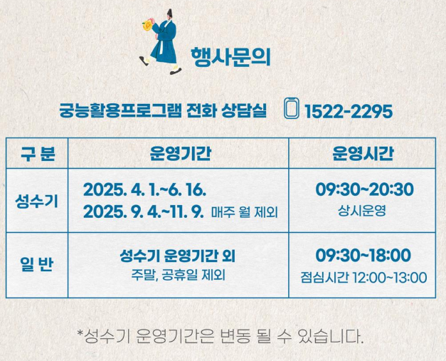 - 행사문의 : 1522-2295 (궁능활용프로그램 전화 상담실)