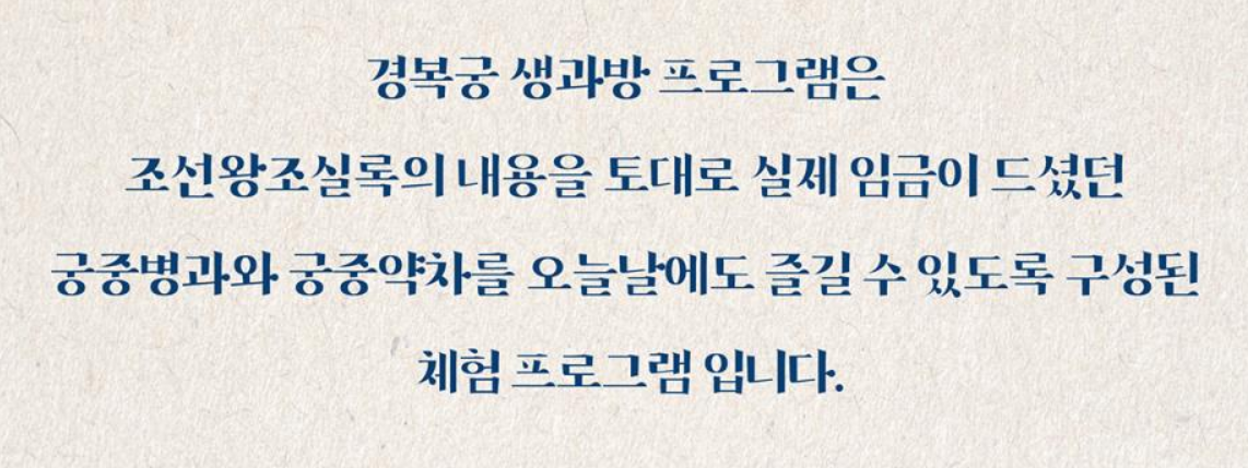 경복궁 생과방 체험은 사전 예약이 필수입니다.