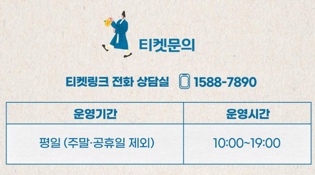 - 티켓문의 : 1588-7890 (티켓링크 상담실) 평일 10시~19시