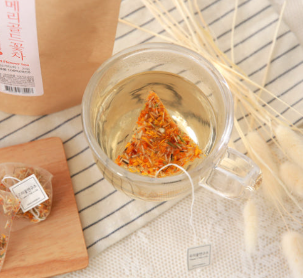 TIP: 메리골드 꽃차를 얼린 후 화장솜에 적셔 팩처럼 사용하면 피부 진정 효과 UP!
