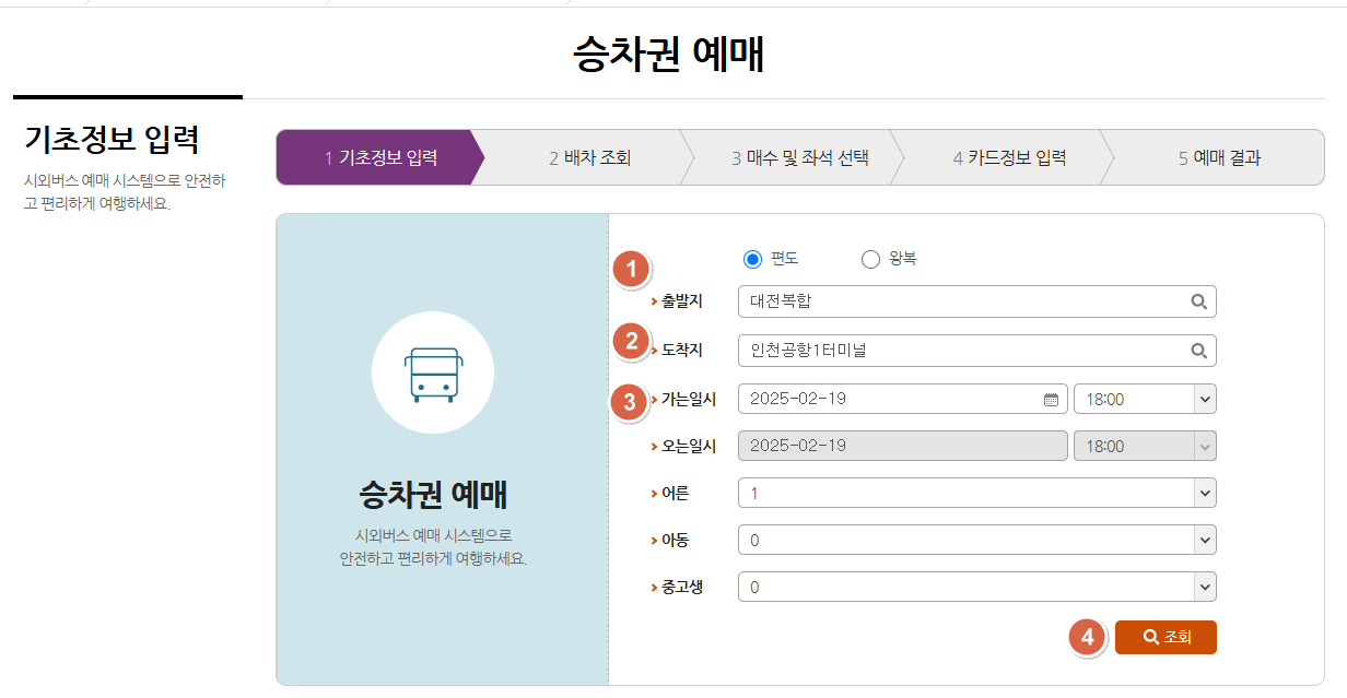 대전복합터미널, 대전 서남부 터미널, 유성시외버스터미널에서 탑승이 가능합니다.
