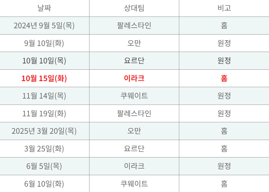 2024년 10월 15일, 용인미르스타디움에서 대한민국-이라크 2026 FIFA 북중미 월드컵 아시아 3차 예선 경기가 열립니다.