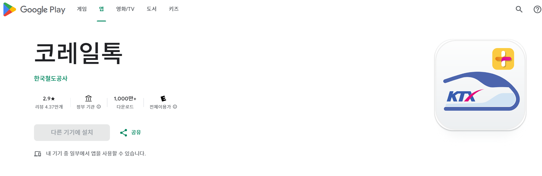 1. 코레일톡 앱으로 예매하기 (모바일)