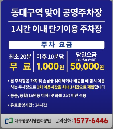 ✅ 민간 주차장 TIP 역 근처에 위치한 민영 주차장은 조금 더 저렴한 요금으로 장기 주차 시 유리합니다. '동대구역 민영주차장'으로 네이버 지도 검색 시 다수의 주차장 위치 확인 가능