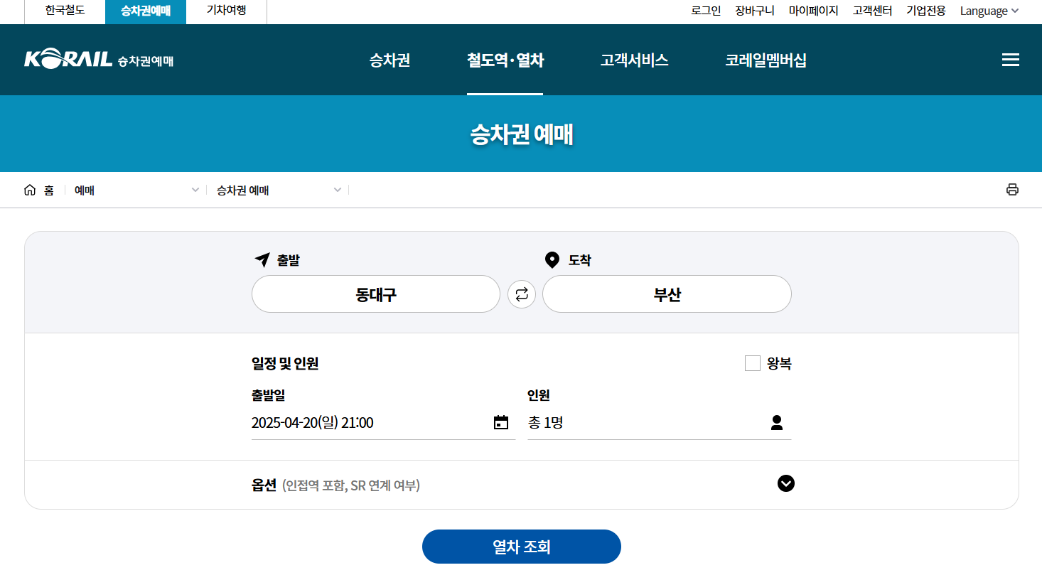 ※ 모바일에서는 코레일톡 앱 이용이 더 간편합니다.