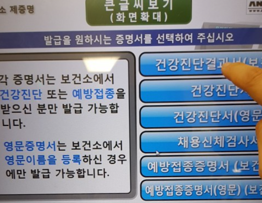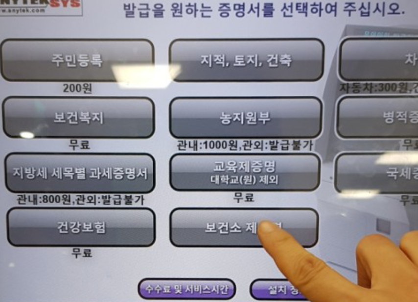 🔹 무인민원발급기 보건증 재발급 방법