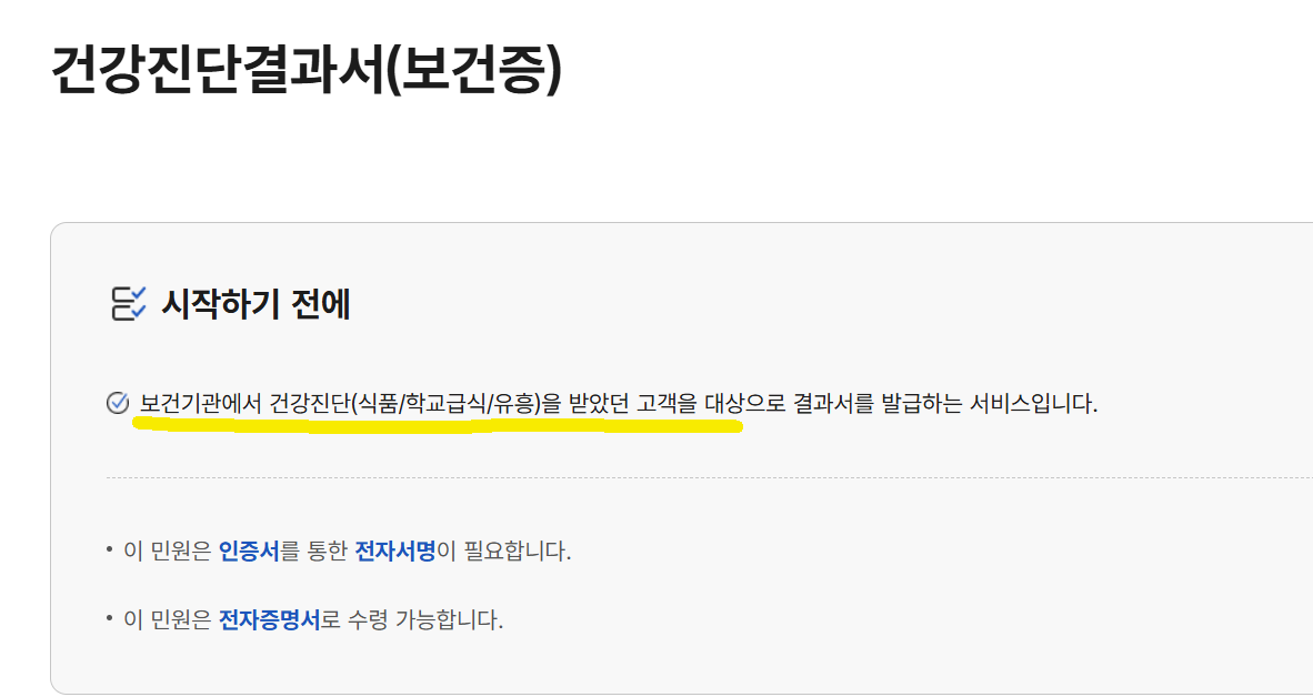 - 최초 보건증 발급을 보건소에서 했으나 전산 등록이 안 된 경우