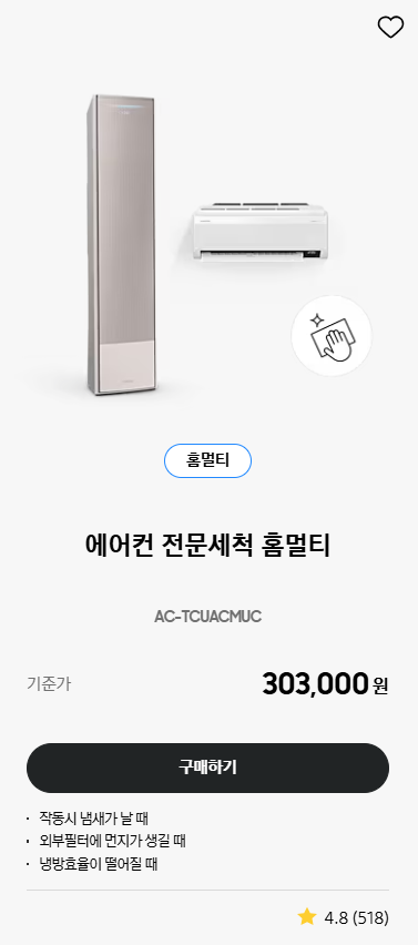 - 서비스 대상은 삼성전자 정품 에어컨이며, 제품 모델에 따라 비용이 상이할 수 있습니다.