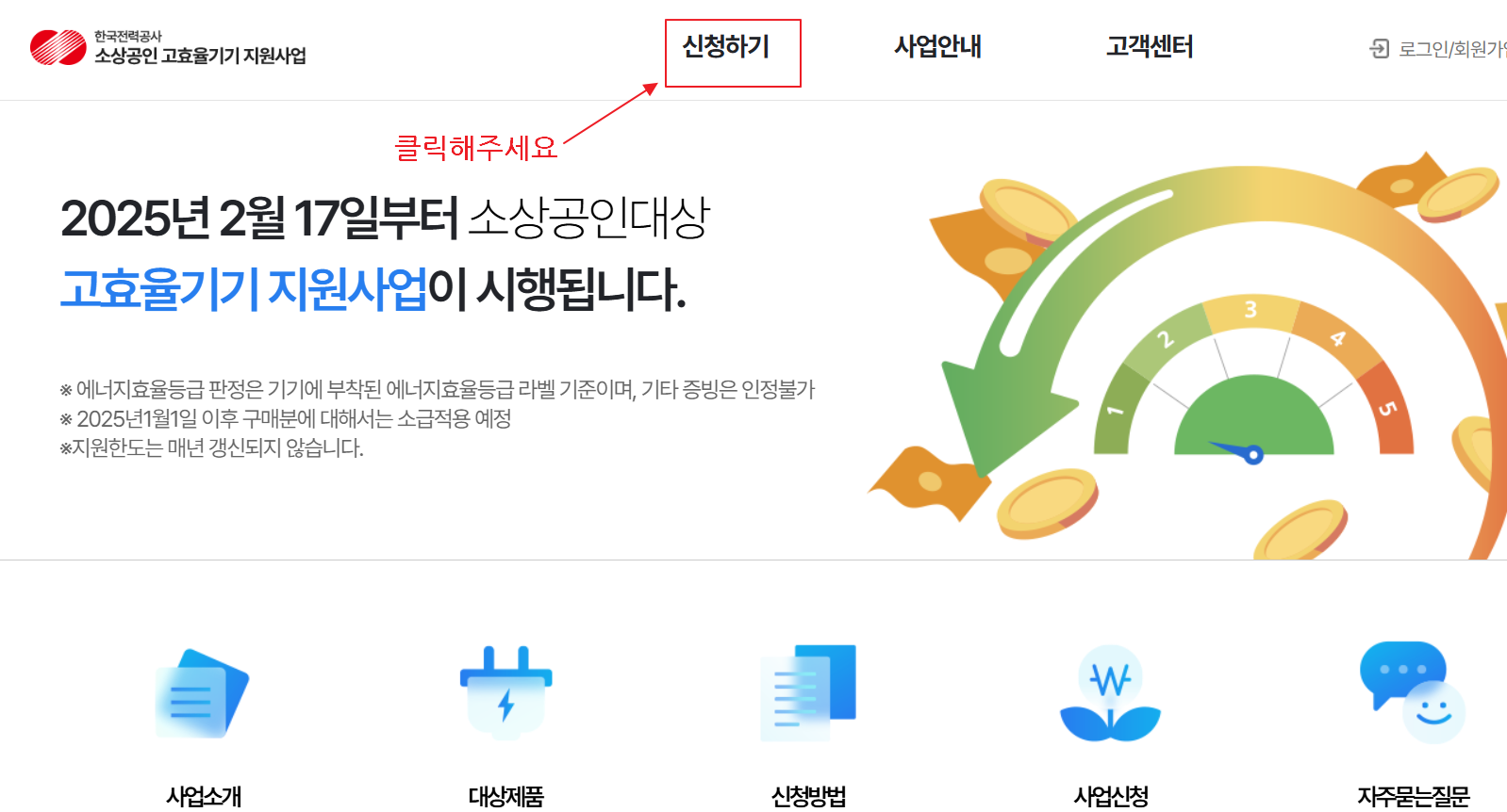 1. 한전 고효율 가전제품 지원사업 홈페이지 접속