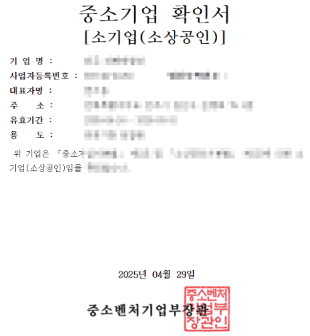 - 중소기업확인서 (발급 사이트: 중소기업현황정보시스템)