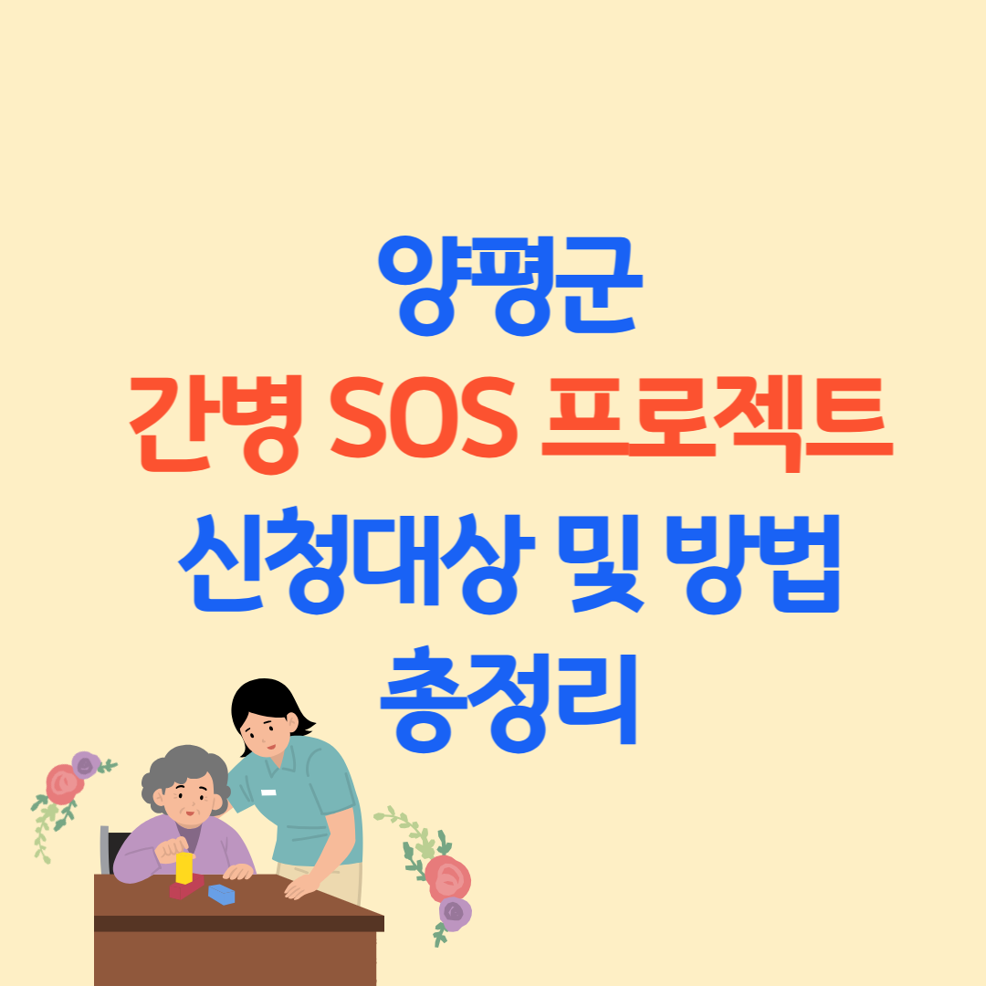 이번 글에서는 양평군 간병 SOS 프로젝트의 지원 대상, 신청 방법, 지원 내용 등을 하나씩 알아보며, 꼭 필요한 정보를 쉽고 명확하게 정리해 드릴게요.