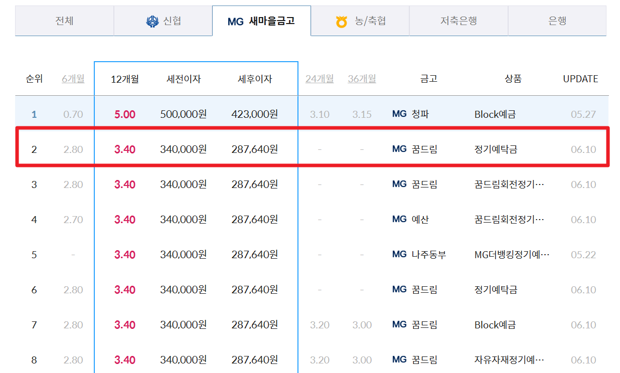 새마을금고 중에서는 MG꿈드림새마을금고단계지점이 3.30%로 비교적 높은 금리를 기록한 사례가 있었습니다.