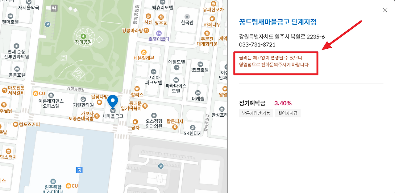▶️ 변동 가능성: 새마을금고의 금리는 예고 없이 변경될 수 있으므로, 가입을 원하시면 반드시 해당 영업점으로 전화 문의 후 방문하시는 것을 추천드립니다.