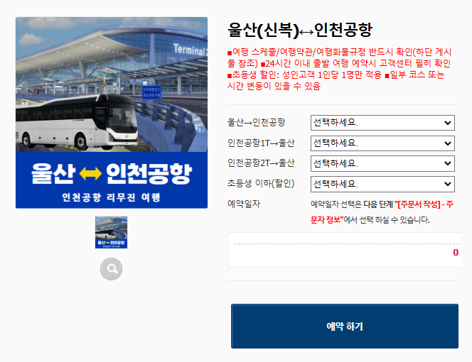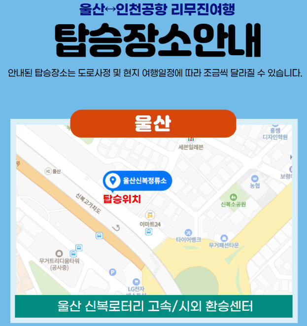 인천공항에서 울산(신복)으로 출발하는 리무진도 같이 예약할 수 있어 편리합니다 :)