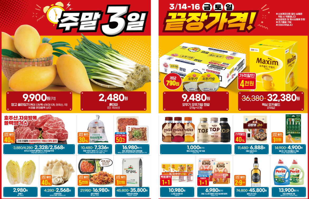 💡 주말 3일 끝장 가격 (3/14 금 - 3/16 일)