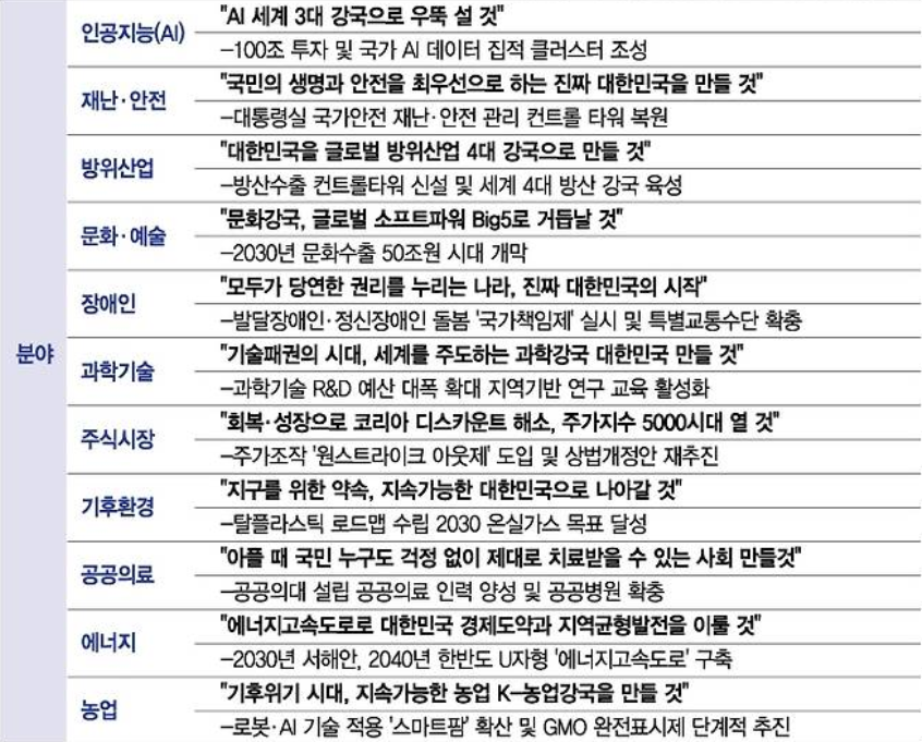 🗳️ 이재명 대선 후보 주요 공약 정리(분야별/지역별)