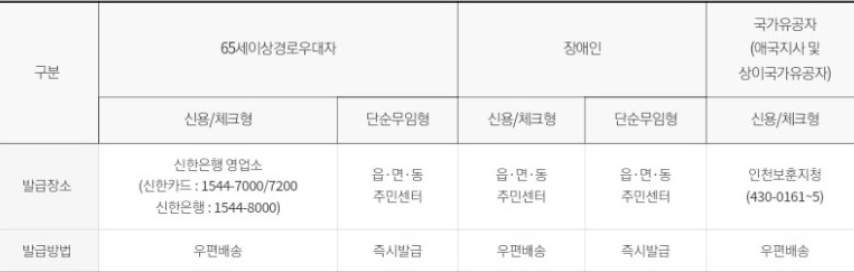신용/체크형으로 발급을 원할 시 주민등록등본과 신분증을 지참하여 신한은행에 방문해야합니다. (일주일 소요)