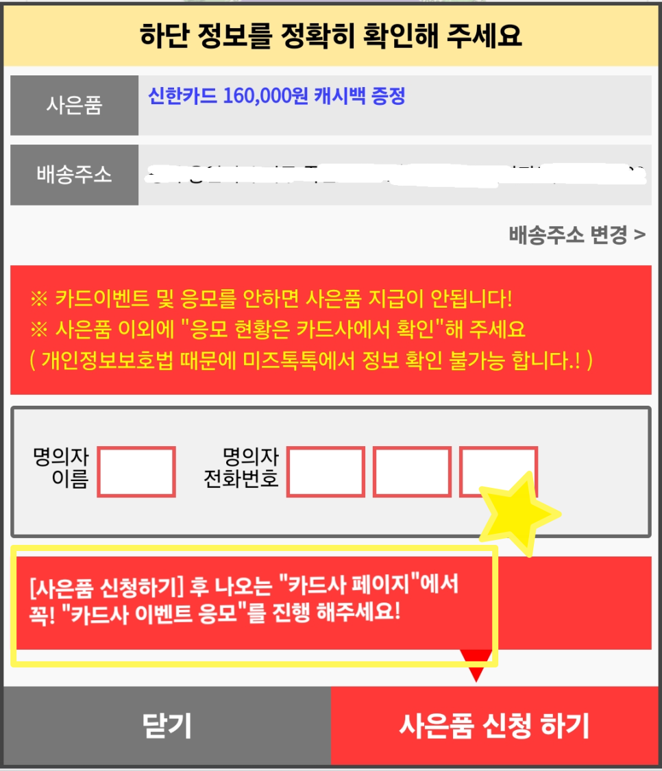 👉 신한카드 이벤트 참여 중인 분들은 사은품 지급 여부 꼭 확인하세요!