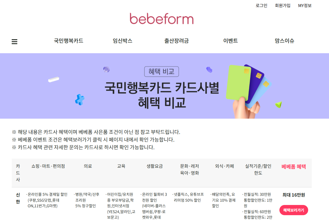 - 이벤트 사이트(미즈톡톡, 베베폼 등)에서 신청: 카드사와 연계된 이벤트를 통해 신청하면 현금 또는 사은품 제공 (단, 태아보험 관련 연락이 올 수 있음)