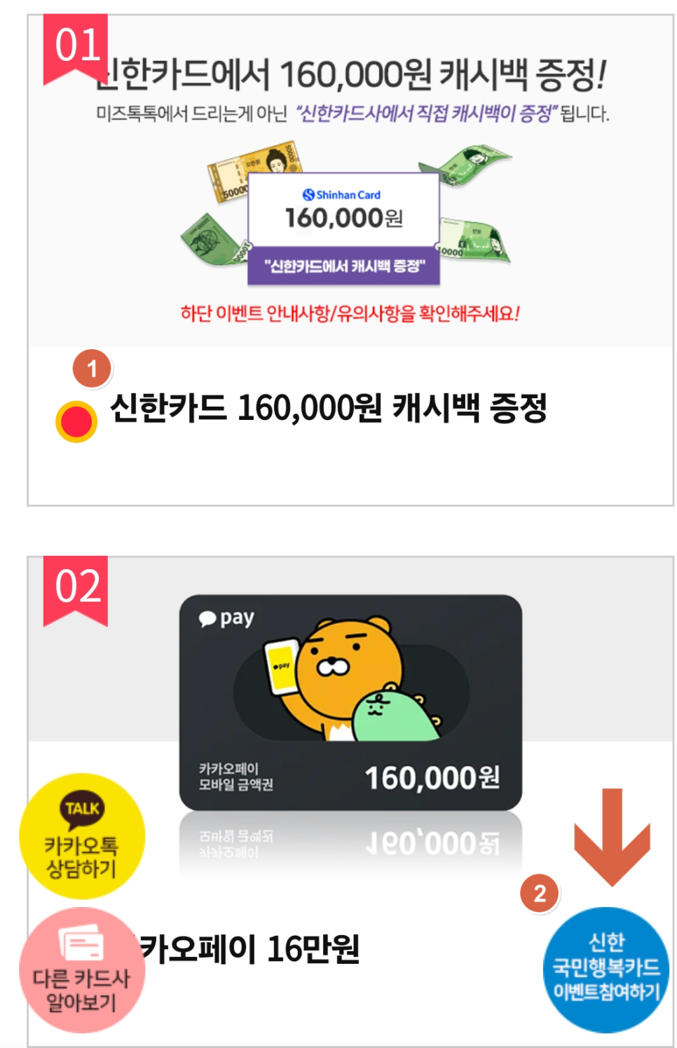 신한카드 16만원 캐시백 증정 선택 - 신한 국민카드 이벤트 참여하기 클릭