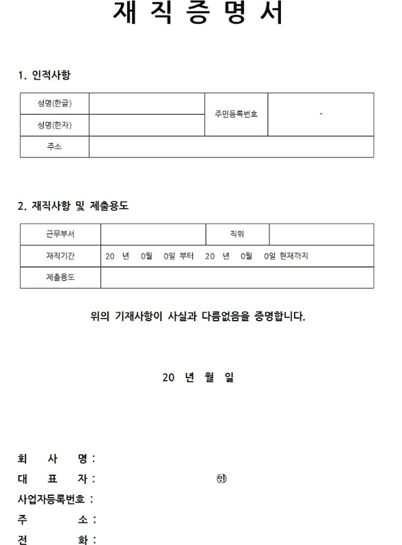 이번 포스팅에서는 재직증명서 한글 파일 5종을 공유해드리겠습니다.