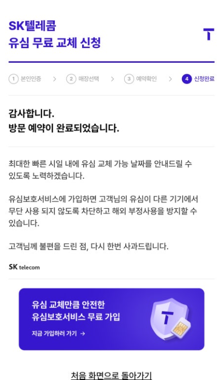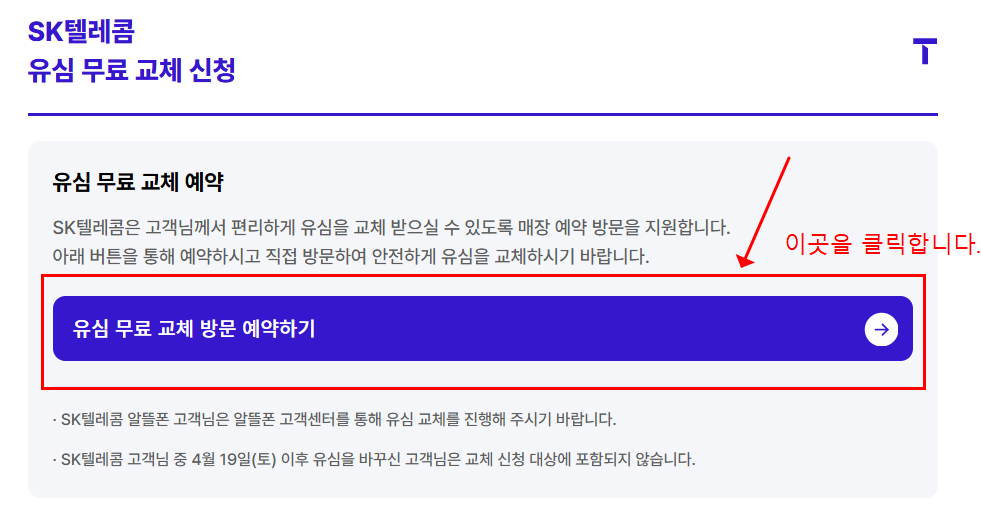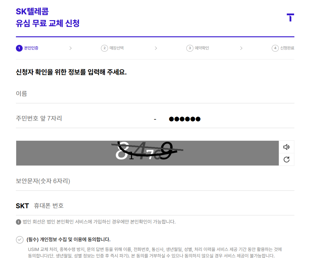- 유심 무료 교체 신청 홈페이지에 접속합니다.