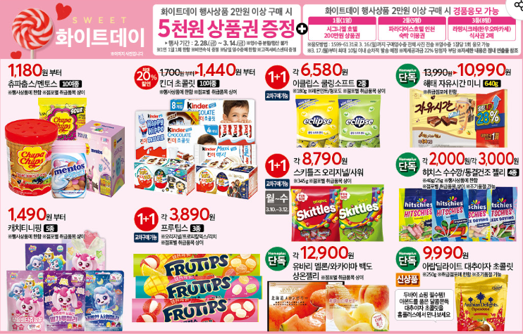 화이트데이 행사상품 2만원 이상 구매 시 5천원 상품권 증정