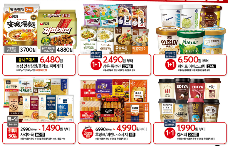 냉장 즉석면 2인분 전품목 1+1 6,490원 부터~ (3.6.목~3.9.일)