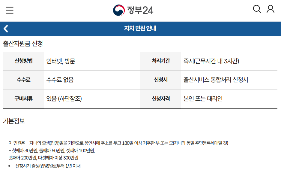 🎁 용인시 출산 지원금 (최대 300만원)