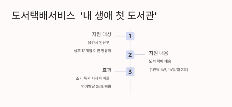 | 도서택배서비스 | 월 2회, 5권 배송 | 임산부/영유아 가정 | 도서관 홈페이지 |