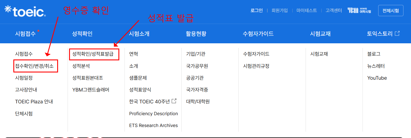 - 카드 결제 영수증은 카드사 홈페이지 또는 토익 접수 홈페이지에서 PDF 저장