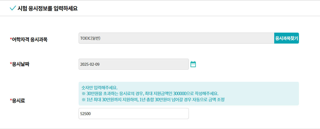 - 신청 대상 응시일: 2024년 12월 이후 시험부터 가능