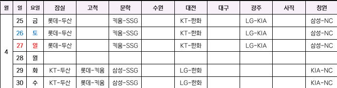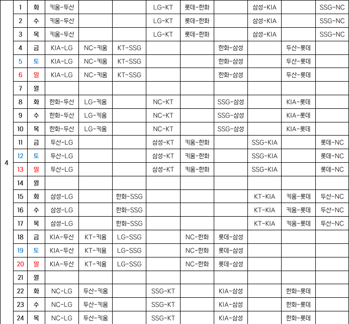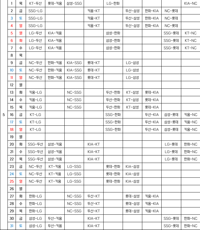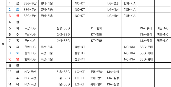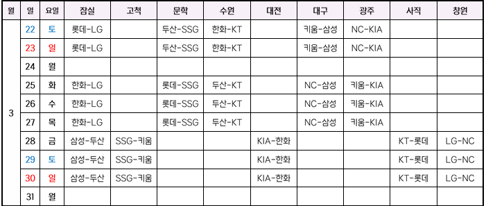 일정표는 KBO 홈페이지에서 확인하실 수 있습니다. 자세히 확인하고 싶으신 분들은 아래를 활용해주세요!