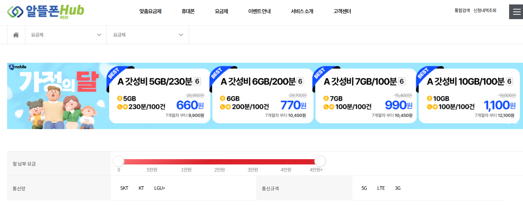3. 알뜰폰허브: 다양한 알뜰폰 요금제를 한눈에 비교하고, 이벤트 및 혜택 정보를 확인할 수 있는 플랫폼입니다.
