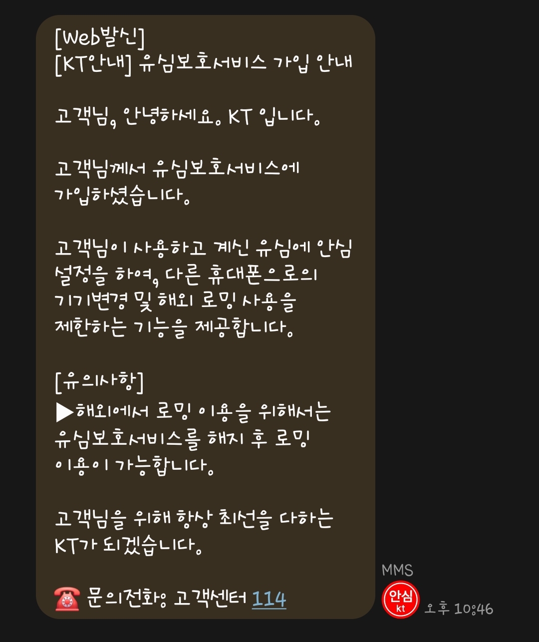KT 유심보호서비스는 무료인데도 효과 확실하니 지금 바로 가입해보세요.